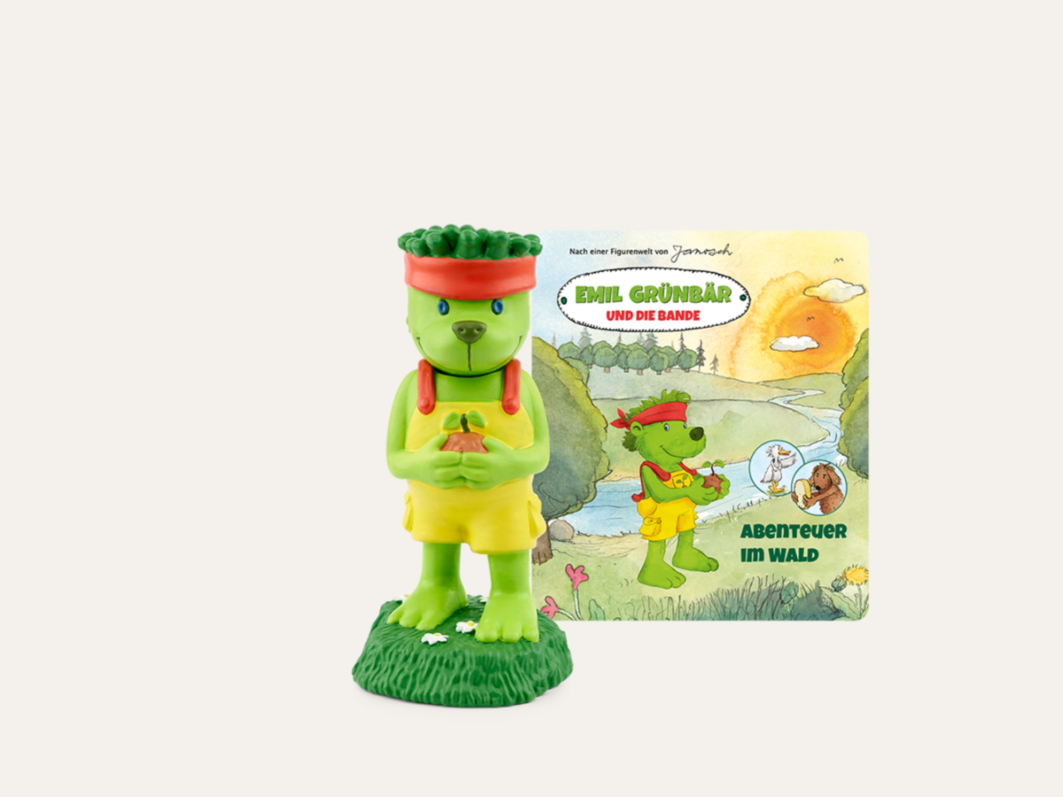 Exklusiv für tonies® wurde ein besonderes Mitglied des bunten Janosch-Kosmos neu belebt: Emil Grünbär, ein gutmütiger Typ, dem sehr viel an der Natur und ihrem Erhalt gelegen ist. Gemeinsam mit der eleganten Dolli Graugans und dem schläfrigen Hund Rüdi von Lieberbaum macht er sich auf, weil ihn das Abenteuer kitzelt. Dabei stellen sie fest, dass sie (nicht zuletzt wegen uns Menschen) einiges im Wald in Ordnung bringen müssen.